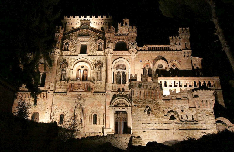 Della Monica scelse lo stile gotico per il suo complesso e gli conferì, volutamente, un aspetto decadente per donargli quel fascino magico dei manieri medioevali. Per la costruzione utilizzò poi il materiale di recupero dell'antica chiesa di San Venanzio e arricchì gli interni con dipinti che riprendevano gli stili del passato. Alla sua morte diverse furono le discussioni per l'utilizzo del castello ma, visto che ogni soluzione pareva impossibile da realizzare, gli eredi ne mantennero la proprietà fino alla fine degli anni Settanta. Ceduto poi al comune di Teramo, il complesso medioevale è ora in fase di trasformazione in un museo capace di sfruttare sia gli spazi interni che esterni.